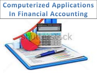 Computers are extensively used in accounting to process large volumes of data and provide accurate financial information to decision makers. Sophisticated accounting systems can handle general ledger, inventory, payroll, billing, and more. They update sales, purchases, stock levels, and determine reorder amounts. Computers also aid in costing, budgeting, production scheduling, accounts receivable/payable, and financial statement preparation and analysis to evaluate performance and predict future outcomes. Management accounting uses computerized financial data to assist planning and decision making.