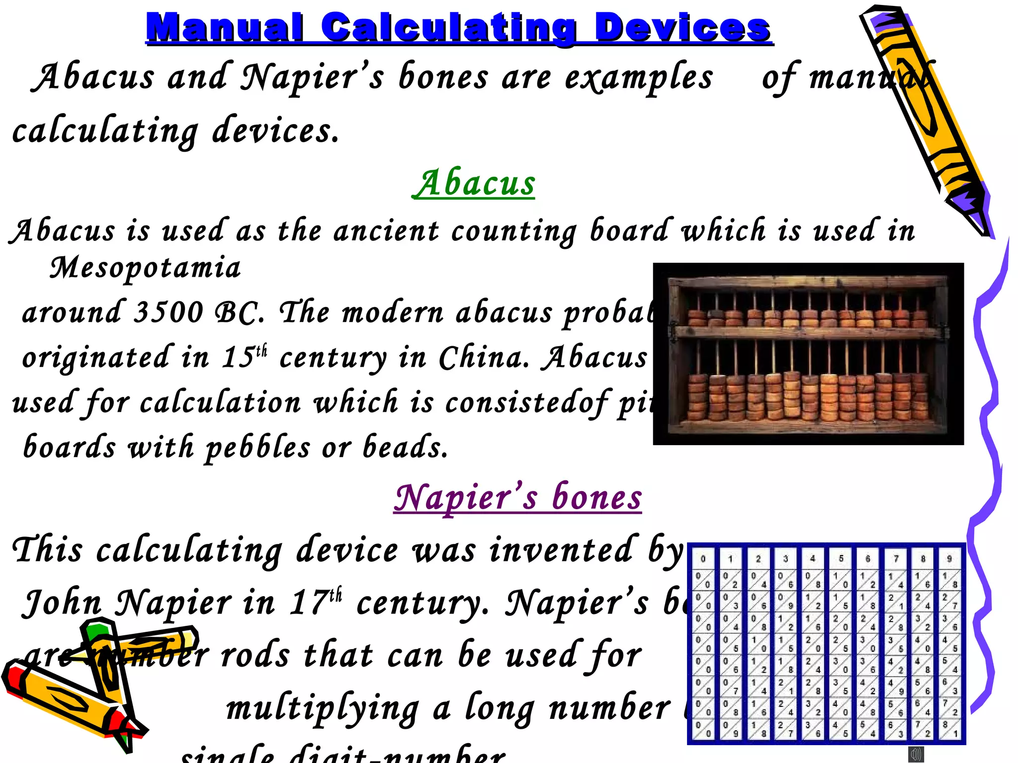 The document traces the evolution of computers from ancient manual calculating devices like the abacus and Napier's bones, to early electromechanical machines in the 17th-18th centuries developed by Pascal, Leibniz, and Babbage. It then discusses the development of programmable electromechanical computers in the mid-20th century like the Harvard Mark 1. The first electronic, digital computers that used vacuum tubes in the 1940s-1950s are also outlined, followed by the transition to transistors, integrated circuits, and microprocessors in subsequent generations from the 1950s to present.