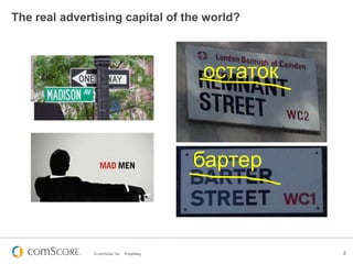 The document discusses comScore's services for measuring digital advertising effectiveness through viewability metrics and validated impressions. It provides examples of how Kellogg's has improved ROI by 2-6x by incorporating these metrics into their strategies. The presentation emphasizes that viewability measurement allows advertisers to optimize campaigns and better understand real delivery across publishers.