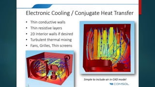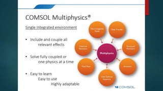 The seminar presented by Manish Kumar Shaw focused on COMSOL Multiphysics, a software for finite element analysis and simulation across various engineering applications. Notable features include its ability to handle coupled systems of partial differential equations, the introduction of custom user interfaces, and integration with MATLAB. The discussion also highlighted advancements in 3D printing capabilities with the software, allowing for design optimization and prototyping directly related to the physics involved.