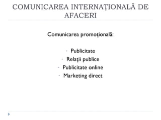 Documentul abordează aspectele esențiale ale negocierii comerciale internaționale, incluzând comunicarea internațională de afaceri și procesul de negociere. De asemenea, analizează influența culturilor asupra negocierilor, cu accent pe diferențele în modul de comunicare, structura timpului și relațiile interumane. Teoria jocurilor este utilizată pentru a explica strategiile și opțiunile înțelese în contextul negociatorilor.