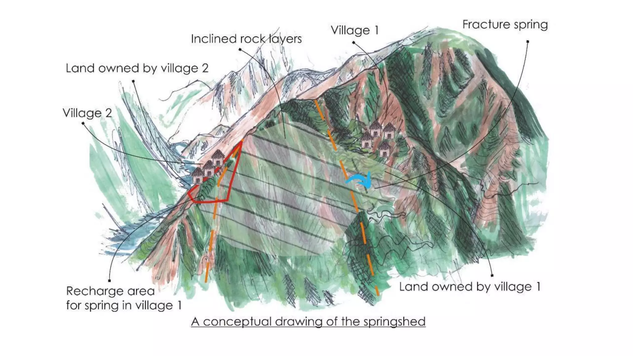 The document discusses the concept of springshed development, focusing on the relationship between springs, aquifers, and watersheds in managing water resources. It outlines principles and practices for enhancing springshed regeneration, including engineering and vegetative measures, while emphasizing community involvement and capacity building for sustainable management. Additionally, it highlights the benefits of springshed development on water security, quality, and biodiversity in the Indo-Nepal region.