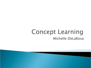 Concepts can be concrete or abstract and are defined as sets of objects or events grouped together based on shared characteristics. There are different levels of understanding concepts from classificatory, where examples and non-examples can be recognized, to formal, where reasons can be provided. Instructional strategies for teaching concepts include presenting examples and non-examples, highlighting terms, using visuals or stories, and describing attributes. Learners should distinguish examples from non-examples, generate their own examples, and apply the concept.