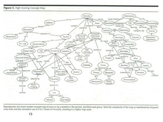 The document provides instructions for medical students on how to construct a concept map based on information gathered from interviewing a simulated patient. It explains that concept maps can help organize complex patient information by showing relationships between different concepts like symptoms, problems, and concerns. Students are guided to identify key concepts from the case, arrange them into groups on a poster, and draw connections between concepts to understand how different factors in a patient's life are interrelated. Making a concept map is intended to help students understand the patient as a whole person in context.