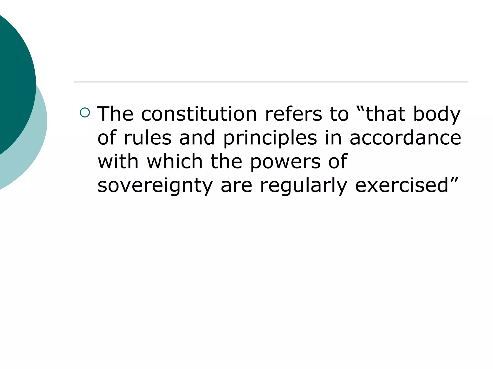 1. A constitution establishes the fundamental rules and principles by which a government exercises its sovereignty and defines the basic framework of government.