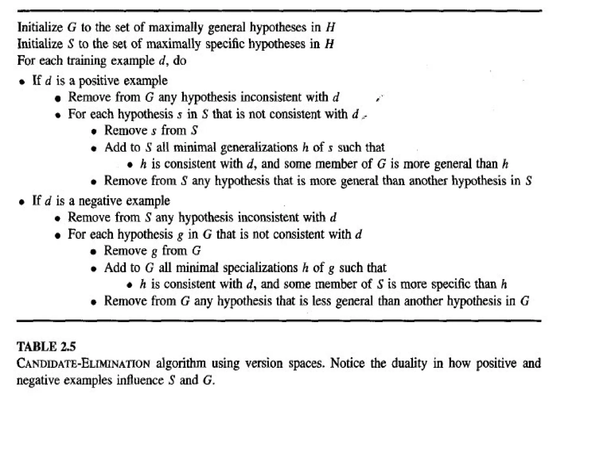 ● After processing all examples, the remaining hypotheses in VS are consistent