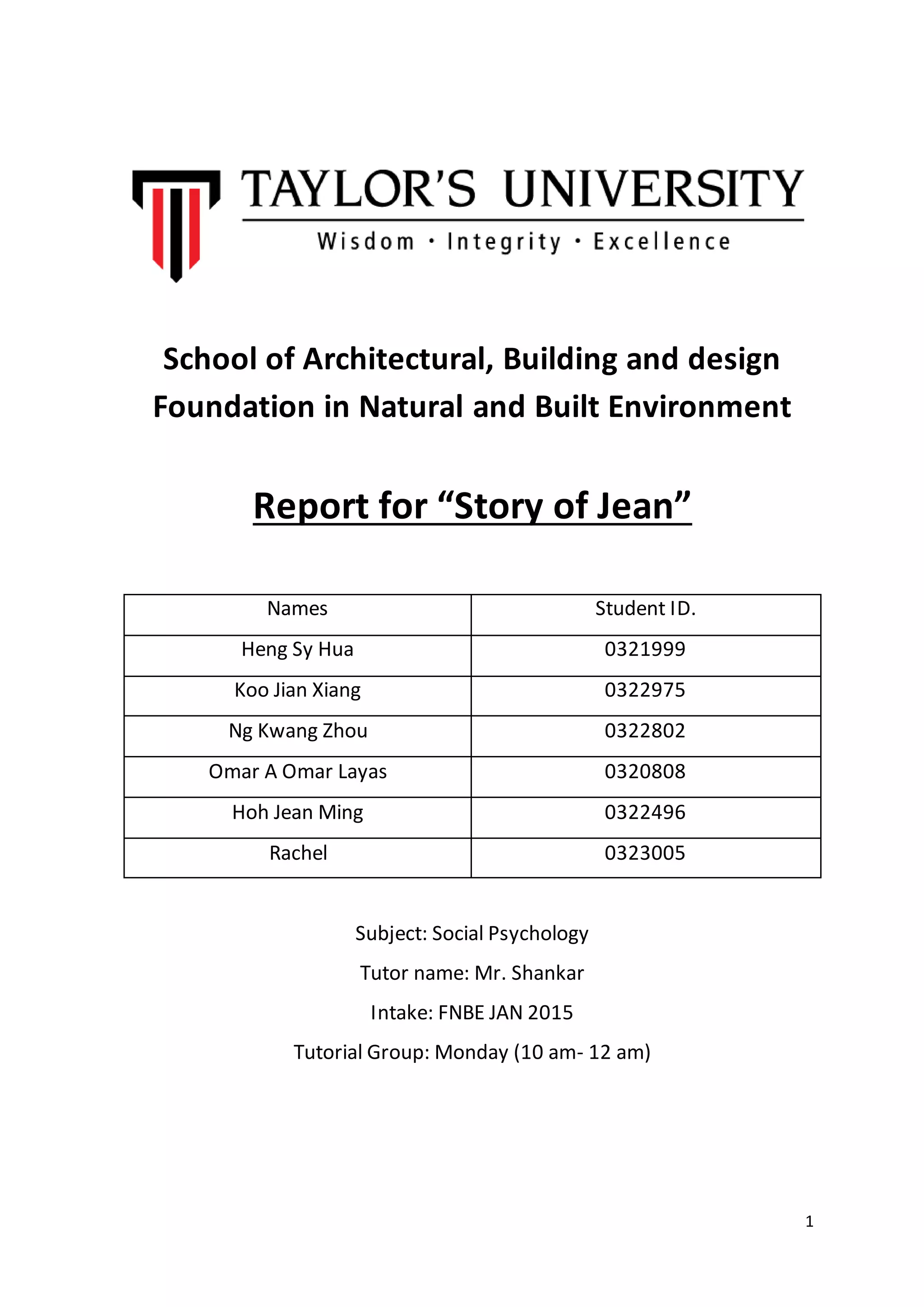 The document describes a group project to create a video and report applying psychology concepts. It includes an introduction outlining the project requirements, methods describing the filming process and group roles, a plot summary of the story involving characters Jean and Rachel, and various sections of the report like references and minutes of meetings.