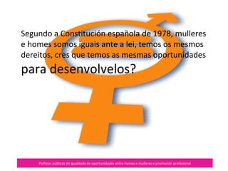 Políticas públicas deigualdade de oportunidades entre homes e mulleres e promoción profesional