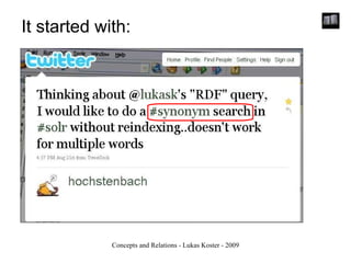 The document discusses the SwiftBox information system created in the early 2000s to replace multiple existing systems. SwiftBox used abstract concepts and unique identifiers defined in thesauri to link objects and define their types and attributes. Objects could have fields linked to concepts in thesauri and relations between objects were also defined using thesauri terms and relations like broader term. This allowed linking of data between databases using concepts, synonyms, and multilingual labels while keeping a decoupled backend and frontend.
