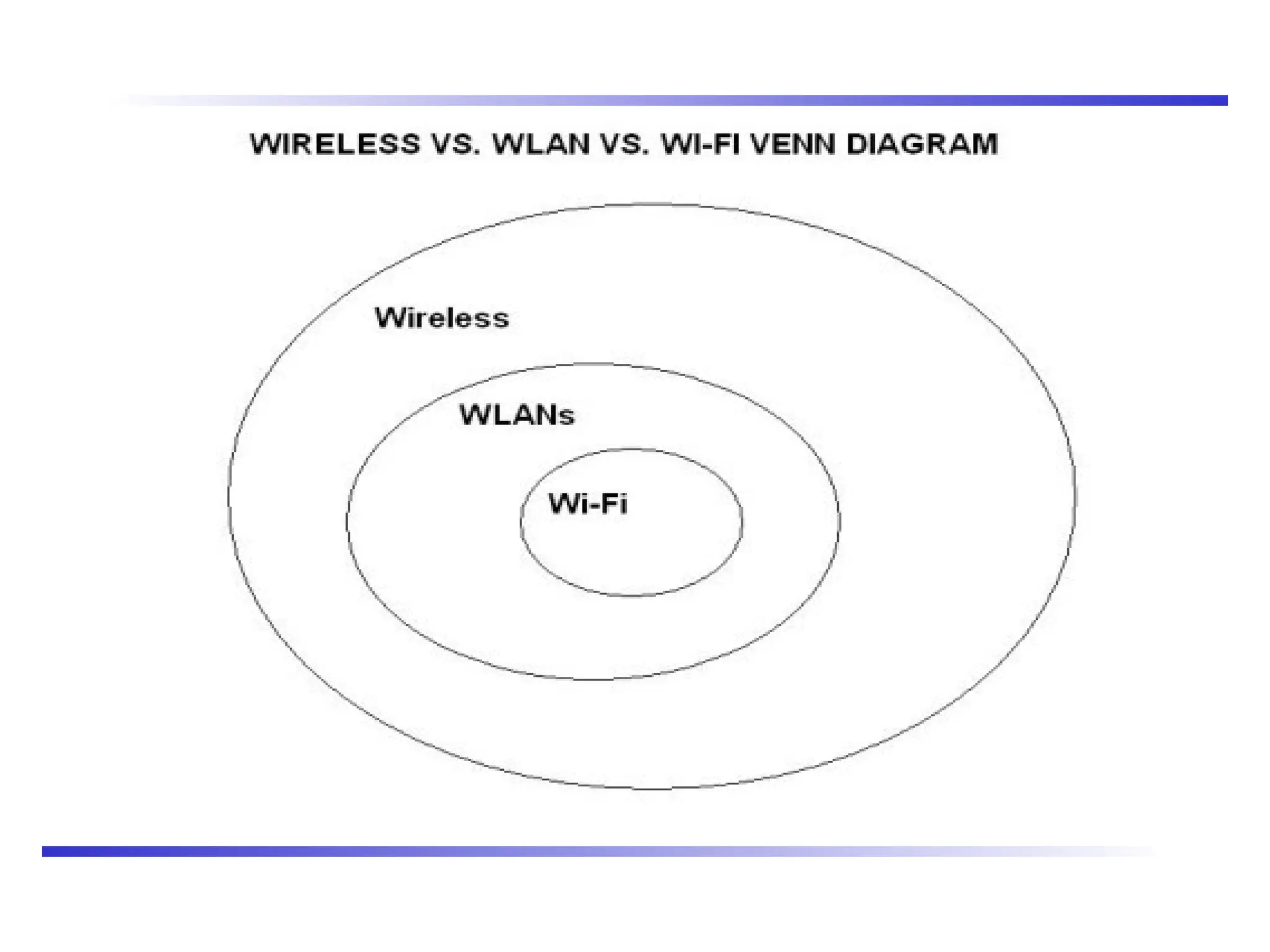 • Wi-Fi - type of WLANs that use specifications in