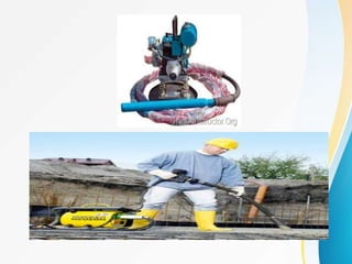 This document discusses various stages of manufacturing concrete, including batching, mixing, transporting, placing, compacting, curing, and finishing. It describes batching by volume or weight, mixing methods such as hand mixing or using stationary or ready mix concrete, transporting concrete using various equipment, and compacting concrete through hand or vibratory methods to remove air. The key stages and methods are outlined in detail with explanations and examples provided.
