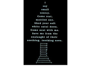 This document provides instructions for writing a concrete poem: 1) Draw a sketch of an image from the world, 2) Write the first rhyming couplet describing the image, 3) Write the second rhyming couplet, 4) Combine the couplets into 4 lines shaped like the original sketch, adding the words in the shape drawn. The example given is a 4 line poem about a plane taking off shaped like wings.