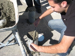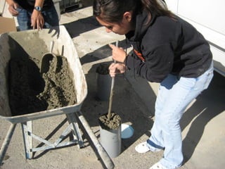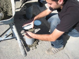 This document summarizes a student project testing the compressive strength of concrete mixtures with different admixtures. It provides details on sample preparation and testing procedures. The samples tested included a control mixture and mixtures with fly ash, silica fume, and polypropylene fibers added. Testing was conducted at various ages to observe strength development over time. The results showed general strength increases with silica fume and the fiber mixture, though inconsistencies between samples made conclusions difficult. Sources of error in the testing process were also discussed.