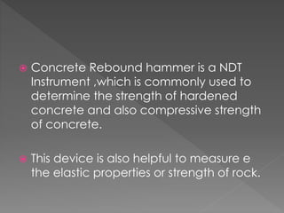 The concrete rebound hammer is a non-destructive testing instrument that is used to determine the strength of hardened concrete and the compressive strength of concrete by measuring its elastic properties. The test is conducted to assess the quality of concrete and its ability to bear loads and maintain durability, as compressive strength directly impacts these characteristics. SGM lab solutions supplies affordable rebound hammers of various makes all over India from their location in Delhi.