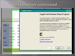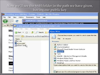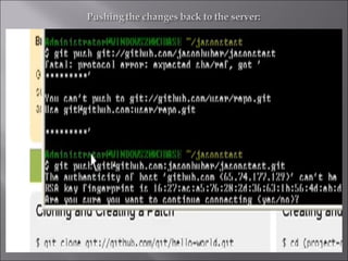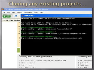 This document discusses installing and using the Concurrent Versions System (CVS) version control software. It describes CVS as a version control system that allows developers to track changes to files over time. The document then provides steps for installing CVS on Windows by first installing Cygwin to enable CVS functionality. It explains downloading and installing msysgit to get Git version control capabilities. After installation, the document describes basic Git commands and setting up a GitHub account to host code repositories remotely.