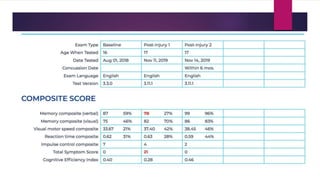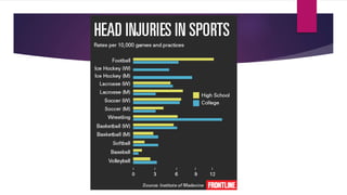 A concussion is a type of traumatic brain injury caused by a blow or hit to the head that causes the brain to move rapidly within the skull. This results in chemical changes in the brain, and symptoms may include headache, dizziness, fatigue, and difficulty concentrating. While often called "mild" injuries, concussions are serious and cannot be seen on x-rays or CT scans. Athletes who have previously sustained a concussion are at greater risk for future concussions. Proper diagnosis and a gradual return to activity under medical supervision are important for recovery.