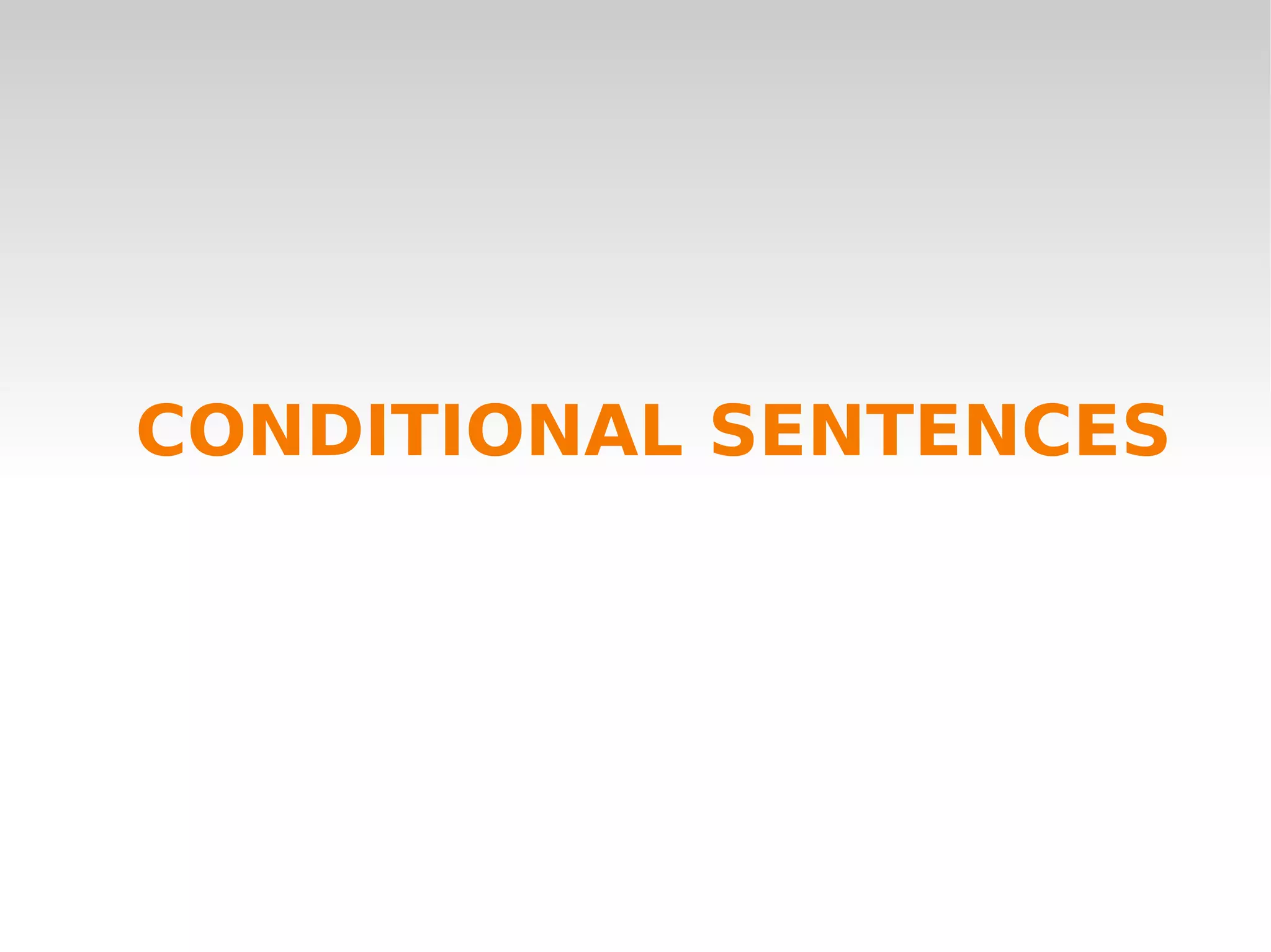 This document describes the three types of conditional sentences in English. First conditional sentences express real possibilities using "if" + present tense in the conditional clause and future tense in the result clause. Second conditional sentences refer to unlikely present or future events using "if" + past tense in the conditional clause and "would" in the result clause. Third conditional sentences refer to impossible past events using "if" + past perfect in the conditional clause and "would have" in the result clause.