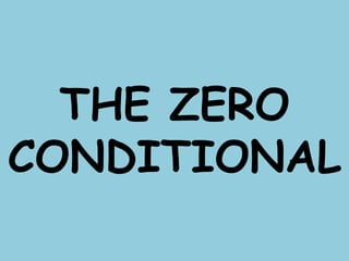 The document discusses different types of conditional clauses in English, including zero, first, second, and third conditionals. It provides the structure and examples for each conditional type. The zero conditional is used for facts or generally true statements and uses the present simple in both clauses. The first conditional talks about possible future events and uses the present simple in the if-clause and will + infinitive in the main clause. The second conditional talks about imaginary situations and uses the past simple in the if-clause and would/could + infinitive in the main clause. The third conditional talks about unreal past situations and uses the past perfect in the if-clause and would/could have + past participle in the main clause.