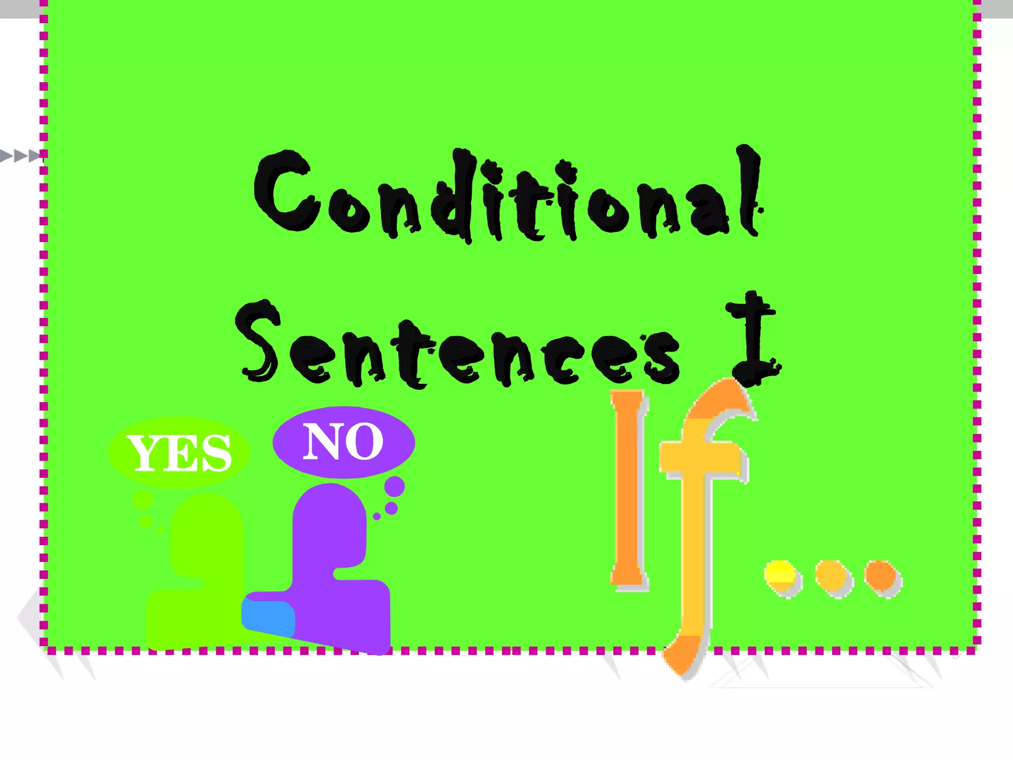 Conditional sentences consist of two clauses: a conditional clause and a main clause. The main clause can only occur if the condition in the conditional clause is met. There are different types of conditional sentences including real/likely conditionals which have a present or future time reference and the condition seems possible to occur, and negative conditions which can be expressed using "unless." Future time clauses use words like "as," "before," and "after" to indicate the condition must be fulfilled at a specific time in the future for the main clause to occur.