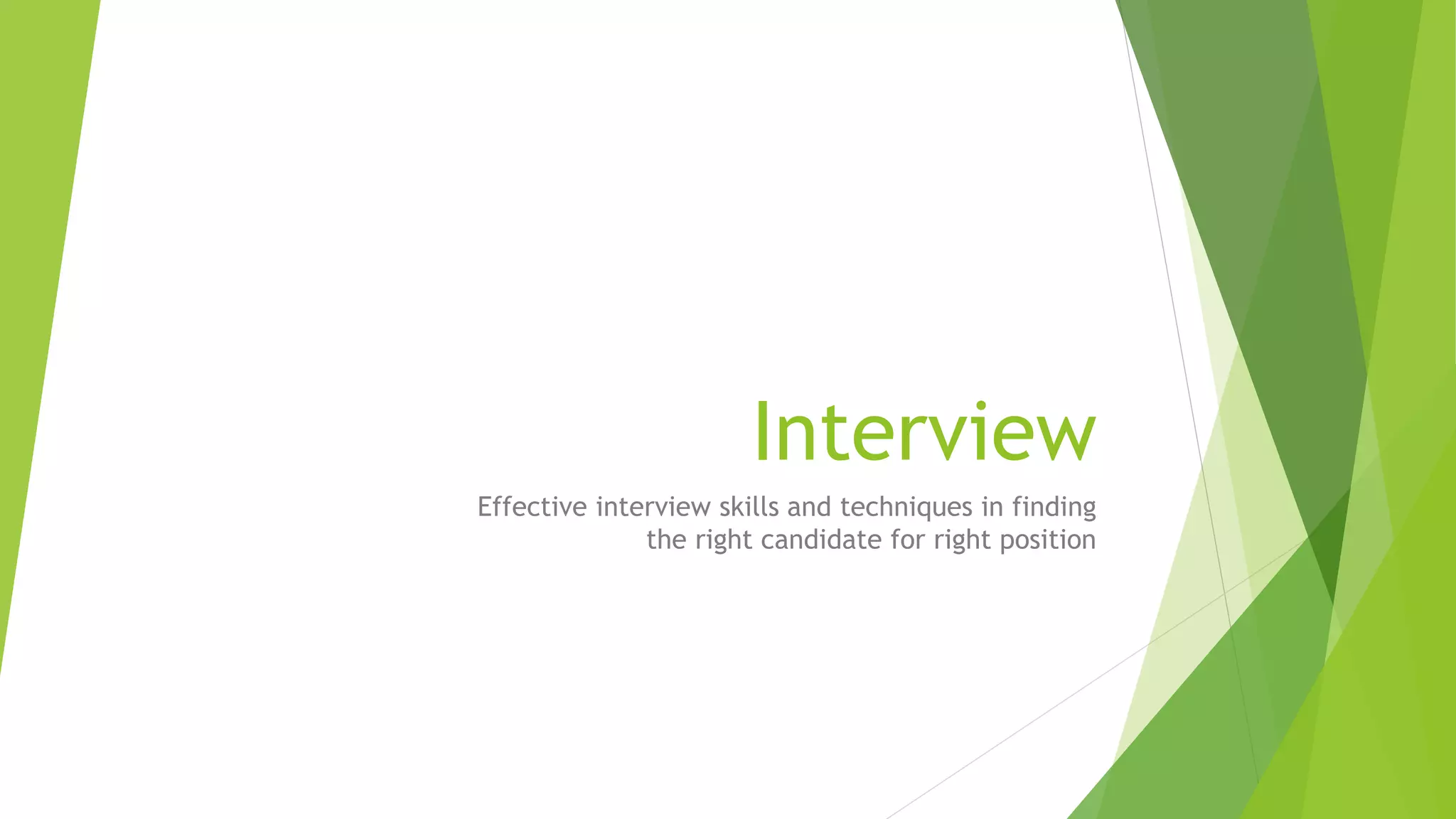 This document provides guidance on effective interview skills and techniques for finding the right candidate for a position. It discusses the importance of ice breakers, properly formulated interview questions, and maintaining appropriate dos and don'ts during an interview. Specifically, it recommends: