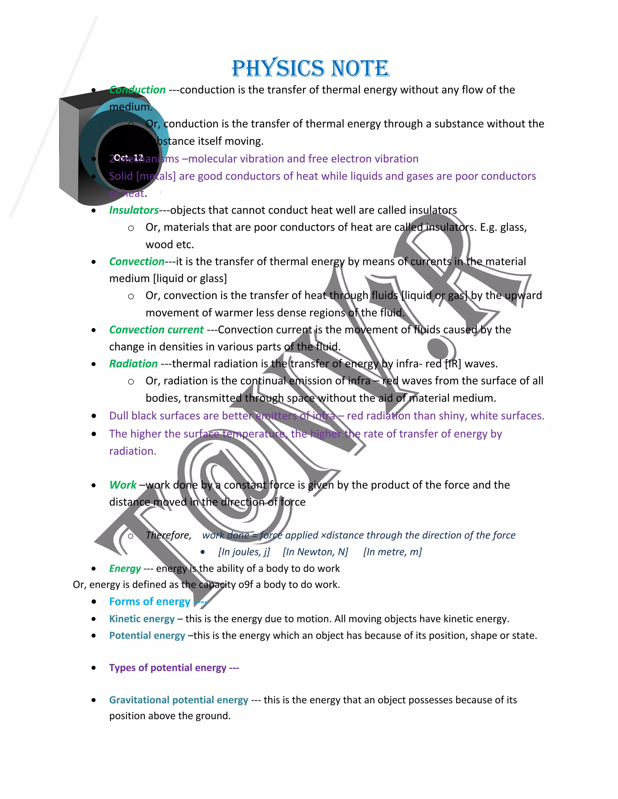 This physics document discusses several topics: