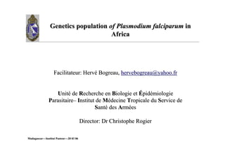 The document consists of a considerable amount of numerical and categorical data related to malaria incidence and genetic variability across different locations, including Dakar, Niamey, Djibouti, and Danané. It presents statistics on clinical malaria attacks, parasite transmission rates, and genetic diversity metrics, along with study sample periods. Insights into the local epidemiological context and genetic analysis methodologies are also provided.