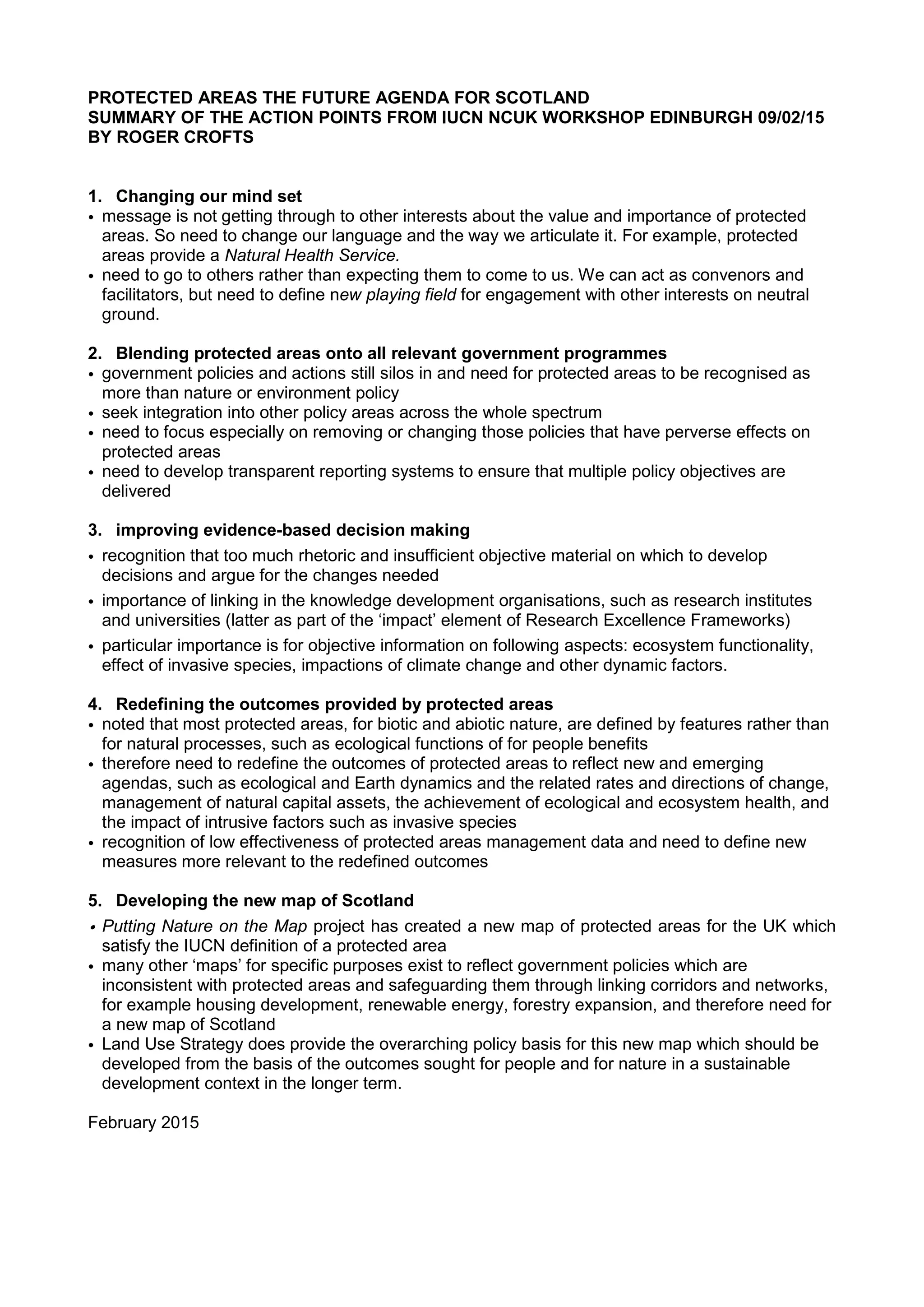1) Change the messaging to emphasize how protected areas provide benefits to people like a "natural health service" and engage proactively with other interests instead of waiting for them.