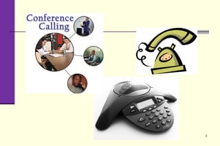 1. The document provides guidance on effectively participating in and conducting conference calls. It outlines objectives for conference calls, such as requirements gathering or status updates.