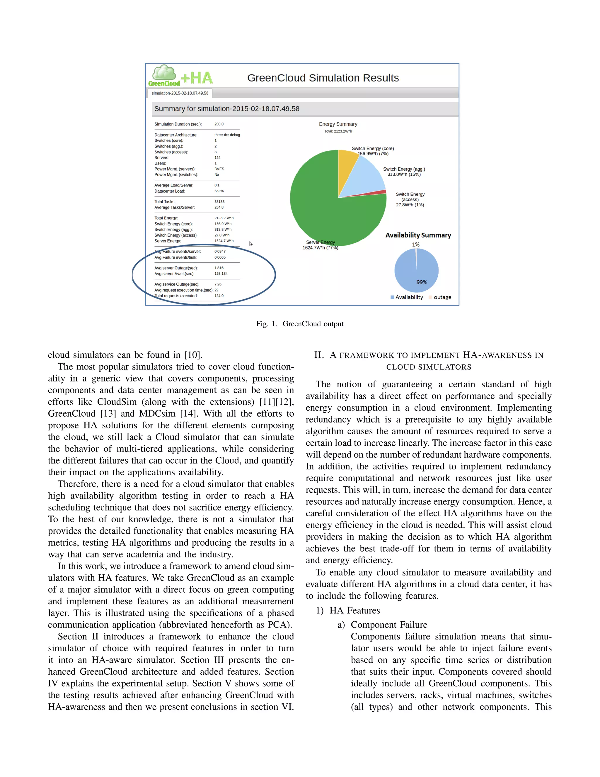 The document discusses the need for high availability (HA) in cloud data centers as businesses increasingly migrate to cloud computing. It introduces a framework to enhance cloud simulators, specifically GreenCloud, by incorporating HA features that improve performance and energy efficiency while addressing component failures and recovery. The authors detail the enhancements made to GreenCloud, allowing users to simulate high availability scenarios effectively and evaluate the impact on energy consumption.