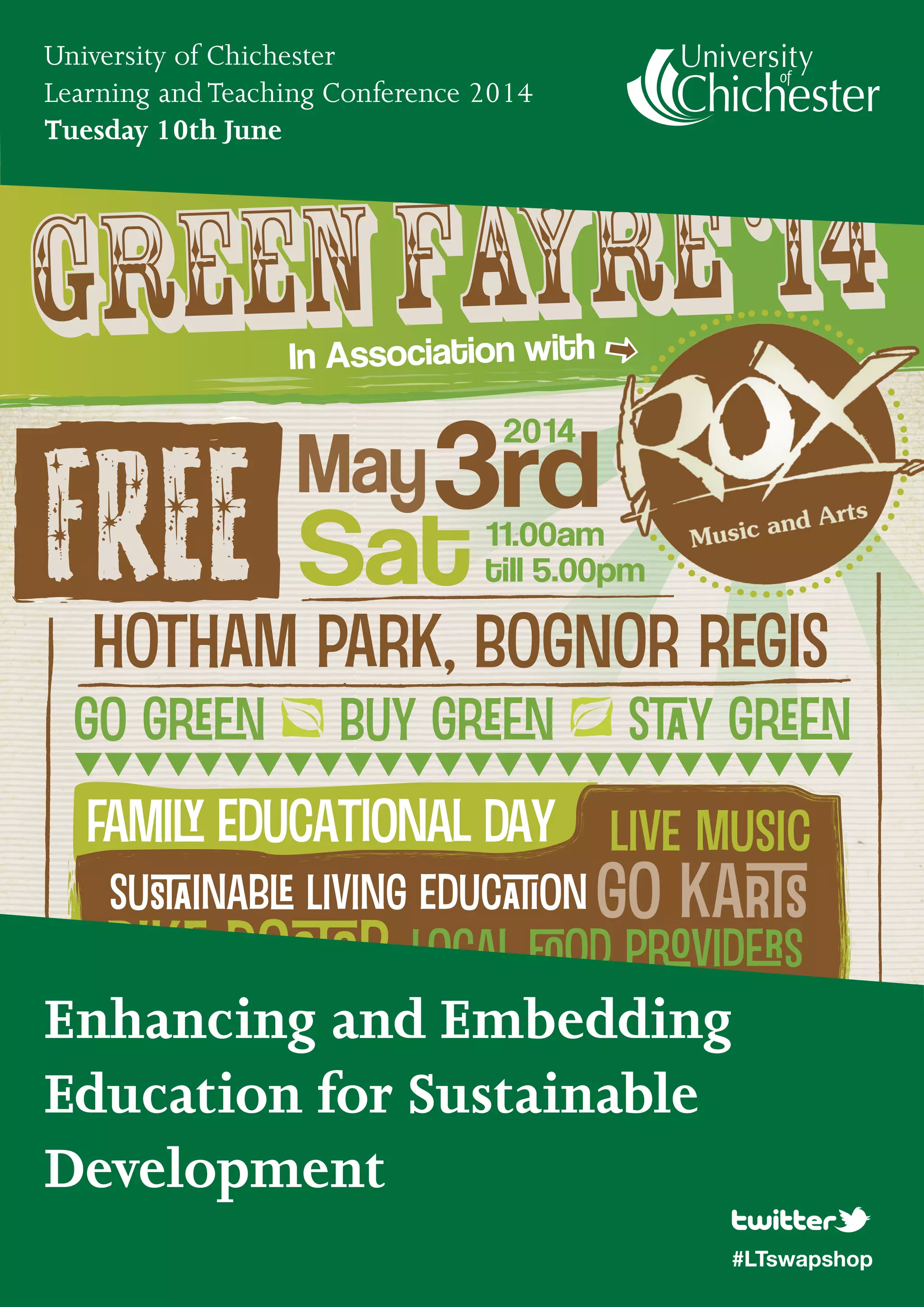 This document provides an agenda and session descriptions for a learning and teaching conference focused on enhancing and embedding education for sustainable development at the University of Chichester. The conference will include keynote speakers on integrating sustainability into higher education and industry perspectives. Sessions will address establishing baselines for ESD engagement, getting sustainability into degree programs, and workshops on incorporating sustainability into curricula. The goal is to highlight best practices for including education for sustainable development at the university.