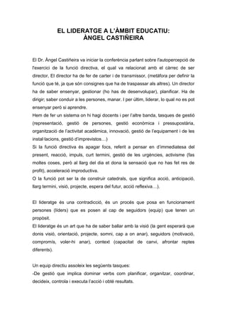 Per acabar, en un lideratge educatiu hi ha quatre funcions a destacar: