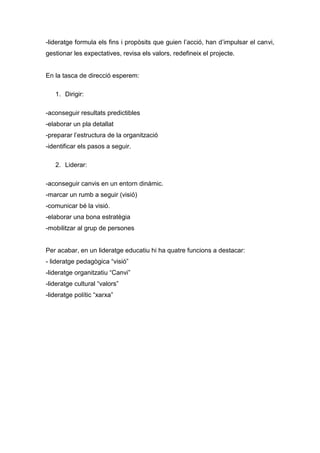 -lideratge formula elsfins i propòsits que guien l’acció, han d’impulsar el canvi,