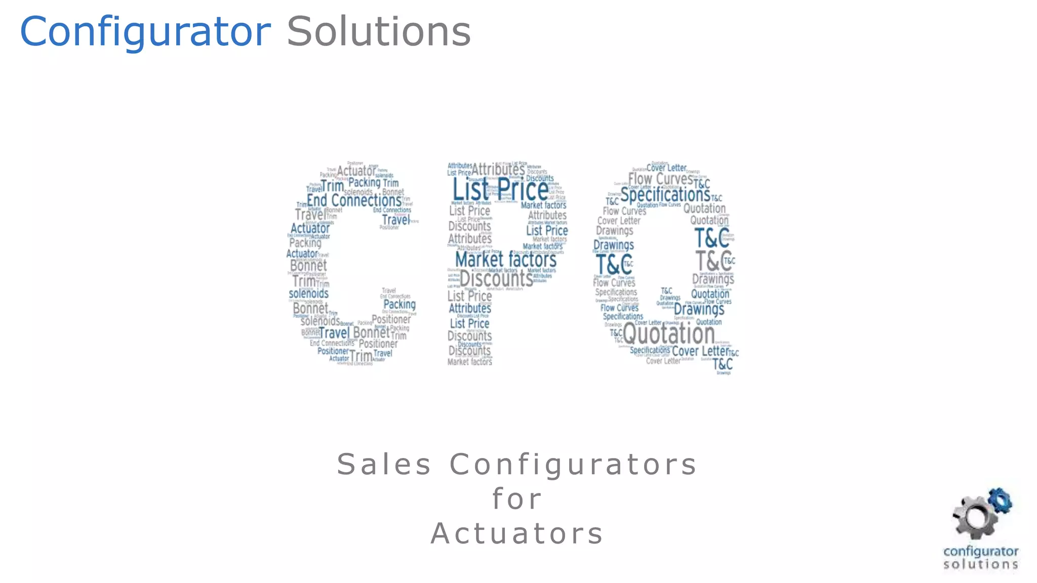 The document describes a sales configurator for actuators that allows users to select actuator products, obtain pricing information, and generate proposal packages. It supports selection of linear and rotary actuators for different valve types. Users enter valve and service data, and the configurator recommends actuator models. It generates quotations, drawings, reports, and integrates with other systems. The configurator is web-based with a responsive design and configurable for multiple products, brands, and regions.