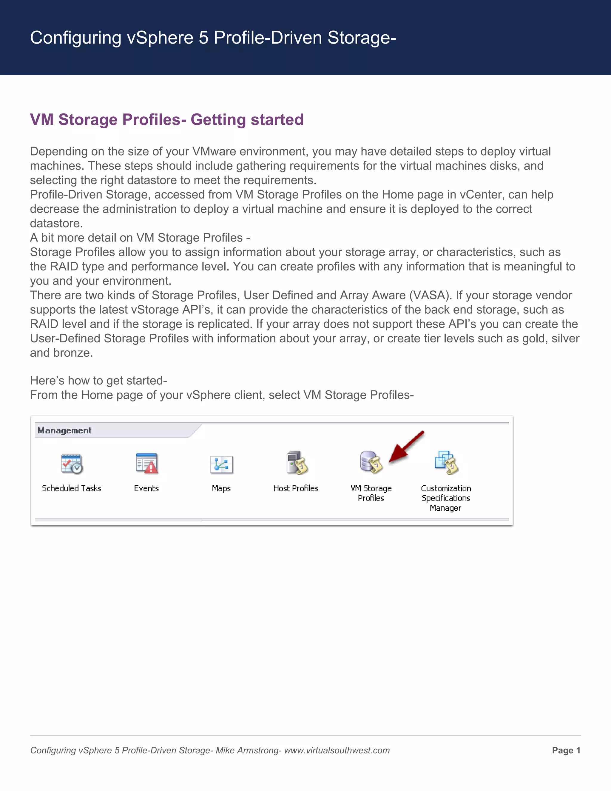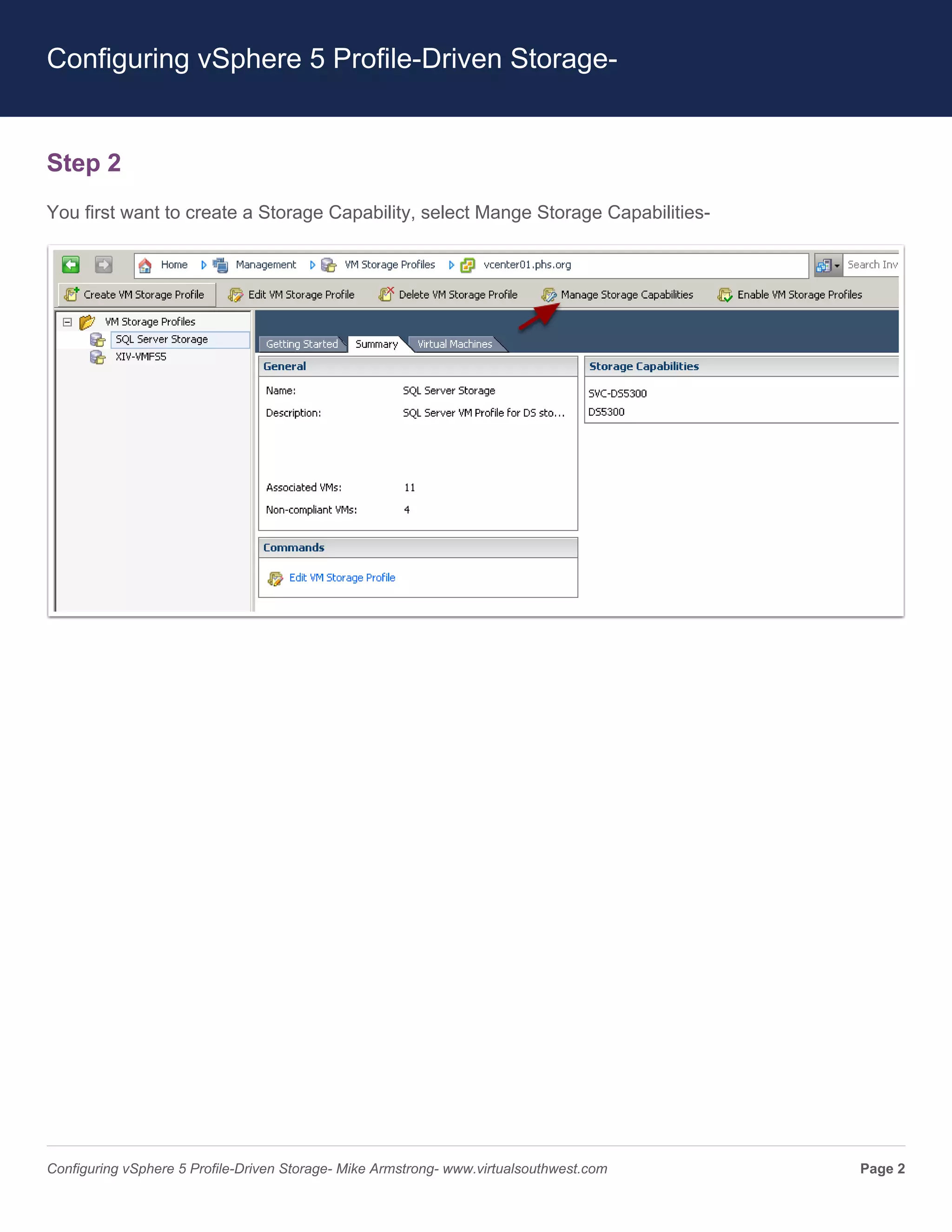 The document discusses configuring VM storage profiles in vSphere 5 to help automate the deployment of virtual machines to the appropriate datastores. It involves creating storage capabilities to define storage characteristics, then using those capabilities to create VM storage profiles. These profiles are applied to virtual machine disks and clusters to ensure VMs are placed according to requirements. The process reduces administration and helps prevent misconfigurations when deploying new VMs.
