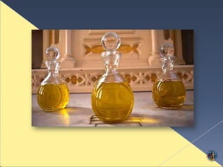 The document discusses the sacrament of confirmation in Christianity. It begins by providing biblical foundations for confirmation from the Old and New Testaments. It then describes confirmation as one of the three sacraments of initiation that imparts a permanent character and strengthens the grace received in baptism. The document outlines the recipients and minister of confirmation, with bishops being the original ministers. It also describes the rites, matter (chrism oil), form (words of blessing), and effects (rooting in God and strengthening faith) of the sacrament. It concludes that confirmation calls Christians to a mission of spreading the faith.