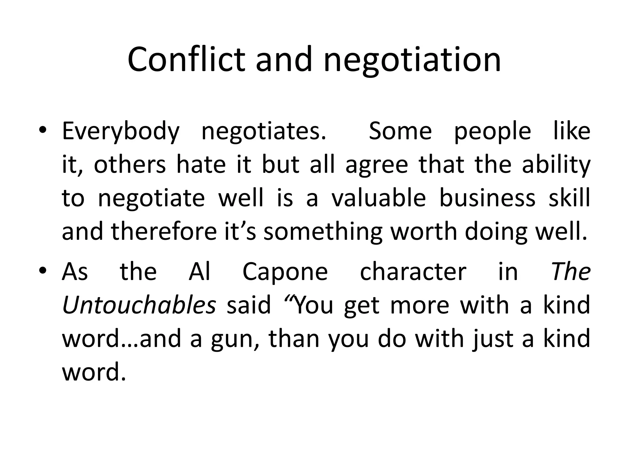 3. Negotiation is an exchange between parties to agree on terms, and can be distributive, seeking to divide a fixed amount, or integrative, creating a win-win solution.
