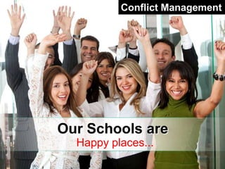The document discusses conflict management within school environments, emphasizing that conflicts are not inherently negative and can lead to innovation and new perspectives. It outlines reasons people avoid difficult conversations and suggests professional strategies for resolving conflicts, including communication, collaboration, and possibly mediation. Important points include the need for active listening and maintaining professionalism while addressing conflicts respectfully.