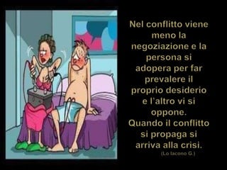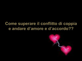 Il documento analizza le dinamiche delle relazioni di coppia, evidenziando come la felicità sia legata al reciproco scambio di esperienze piacevoli e alla soddisfazione dei desideri. Viene discusso il conflitto come fattore che può minare la stabilità di una relazione, con elementi come incomunicabilità, delusioni e frustrazioni. La comprensione delle dinamiche relazionali aiuta a risolvere i conflitti e a migliorare l'intesa sessuale tra i partner.