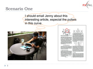 PACER is a system that allows users to interact with paper documents using a cell phone in a seamless way. It uses computer vision techniques and hybrid camera-touch gestures to link physical paper to digital information and interactions. Some key features include allowing fine-grained interaction at the word/character level, semi-real-time processing to handle camera inputs, and hybrid gestures combining embodied gestures and touch inputs. A preliminary user study found the approach was well received and recognition accuracy was over 80%, though further work is needed to improve interactions.