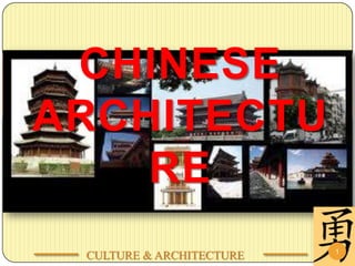 Traditional Chinese architecture was heavily influenced by Confucianism and emphasized hierarchical relationships and social order. Courtyard residences were designed according to Confucian principles, with rooms arranged by status and gender. City planning followed Confucian codes, laying cities on a square grid and differentiating buildings by rank through size and decorative details. The Forbidden City best represents these Confucian influences through its emphasis on the emperor's authority and distinction of interior and exterior spaces.