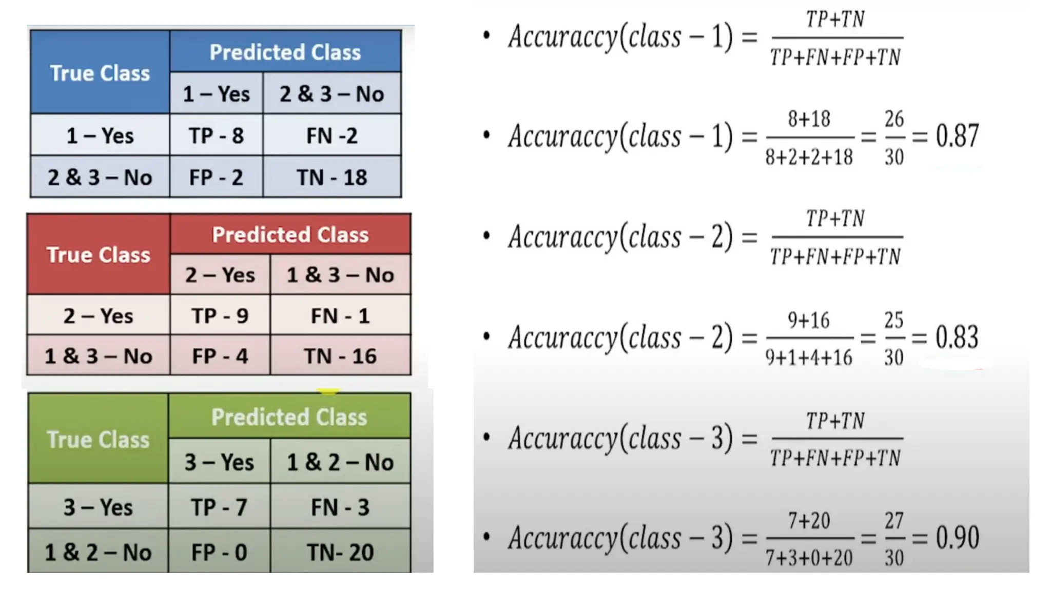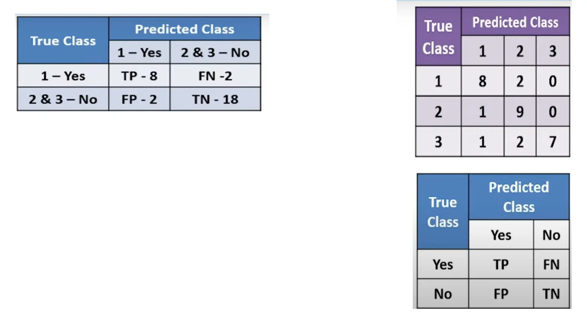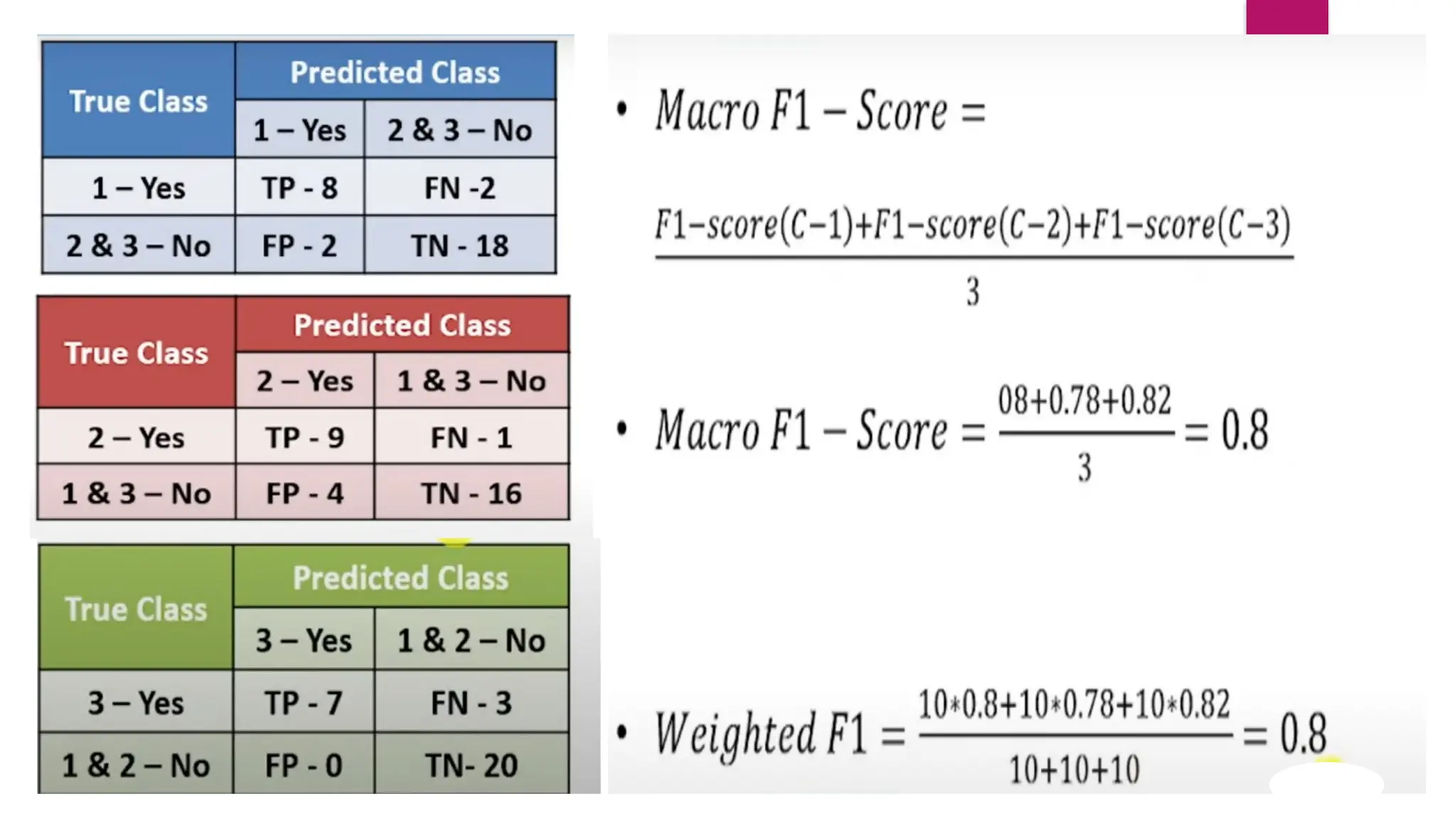 The document discusses multiclass classification concepts, including confusion matrices, performance metrics, and ROC curves. It differentiates between binary and multiclass scenarios, explaining the one-vs-rest (OVR) and one-vs-one (OVO) approaches for constructing ROC curves. Additionally, it covers how to calculate accuracy, precision, recall, and F1-score from confusion matrices.