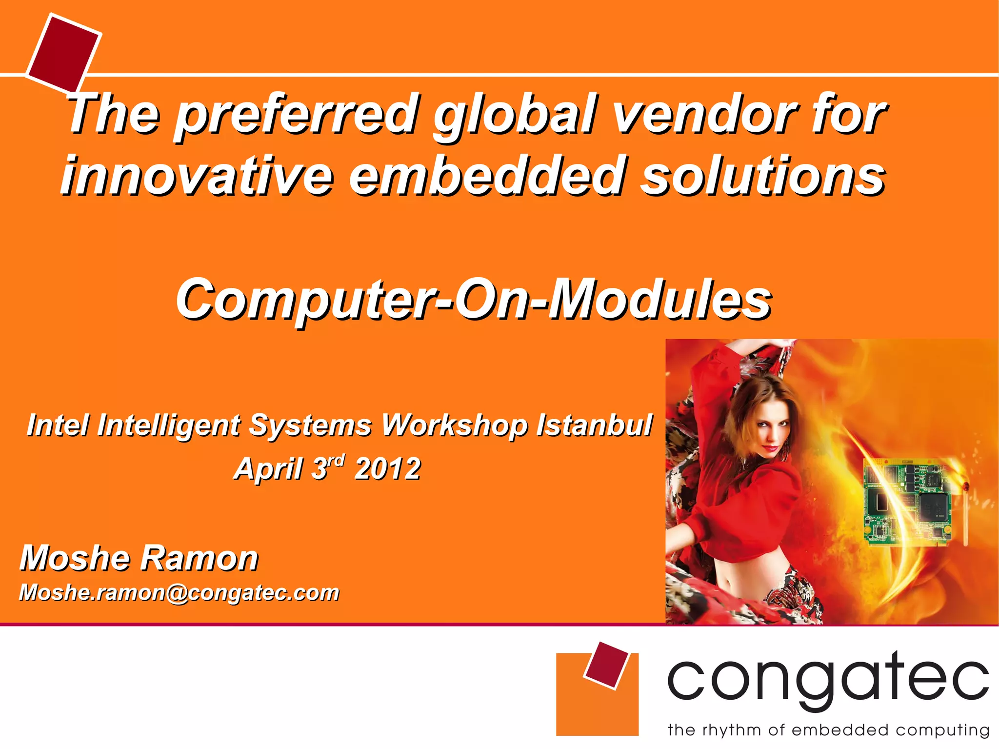 The document discusses congatec, a company that provides computer-on-module solutions. It summarizes congatec's vision, products, partnerships, and support offerings. Specifically, it highlights congatec's COM Express and Qseven modules, cooling solutions, carrier boards, and a new digital signage controller.