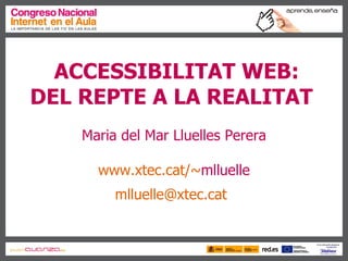 ACCESSIBILITAT WEB: DELREPTE A LA REALITAT Maria del Mar Lluelles Perera www . xtec . cat /~ mlluelle mlluelle @ xtec . cat