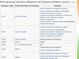3. Key Congress leaders and prime ministers included Jawaharlal Nehru, Indira Gandhi, Rajiv Gandhi, P.V. Narasimha Rao, and Manmohan Singh.