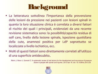 Il documento analizza le aspettative dei pazienti con lesioni spinali riguardo l'uso di dispositivi antidecubito e l'importanza della prevenzione delle lesioni da pressione. Attraverso un'indagine condotta su 99 pazienti, emergono sfide significative legate al comfort e all'efficacia dei materassi utilizzati. I risultati suggeriscono che miglioramenti tecnologici nella progettazione dei materassi potrebbero contribuire a una migliore qualità di vita per questi pazienti.