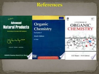 This document describes the chemical structure and synthesis of coniine. Coniine is a highly toxic piperidine alkaloid obtained from hemlock plants. The document outlines reactions that determined coniine has the molecular formula C8H17N and is a 2-propylpiperidine. It also describes three historical syntheses of coniine: the Ladenburg synthesis from 1886, the Bergmann synthesis from 1932, and a more recent nucleophilic substitution synthesis. Coniine was famously used to execute the Greek philosopher Socrates in 399 BC and is still used in some countries to carry out capital punishment.