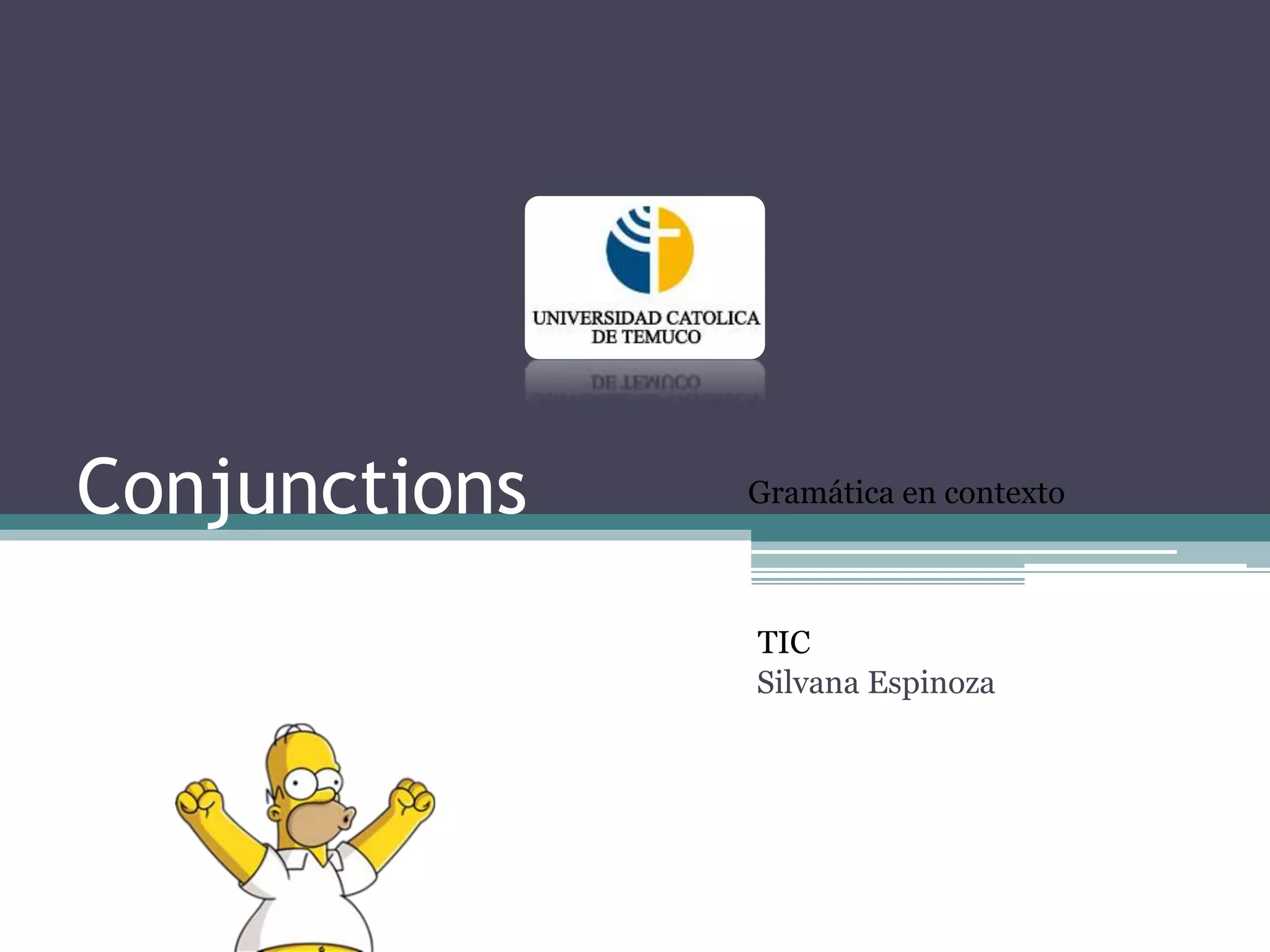 The document discusses different types of conjunctions and conjunctive adverbs used in Spanish grammar. It lists conjunctions, conjunctive adverbs, and correlatives used for addition, contrast, choice, result, time, restatement, example, emphasis, and cause.