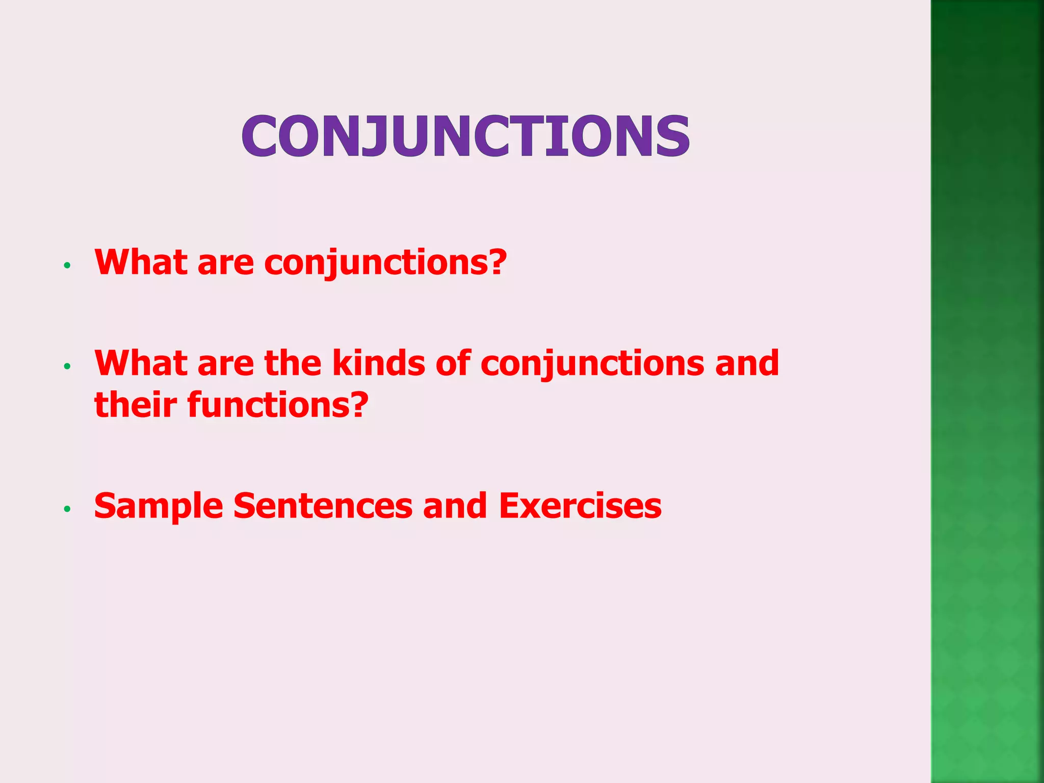 This document defines and provides examples of different types of conjunctions and their functions. It discusses coordinating conjunctions such as "and", "but", and "or" which join elements of equal weight. Correlative conjunctions like "both...and" and "either...or" also join elements of equal weight. Subordinating conjunctions such as "although", "because", and "when" join two clauses by making one subordinate to the other. Finally, conjunctive adverbs like "moreover", "however", and "therefore" connect independent clauses and indicate comparisons, contrasts and other relationships between the clauses.