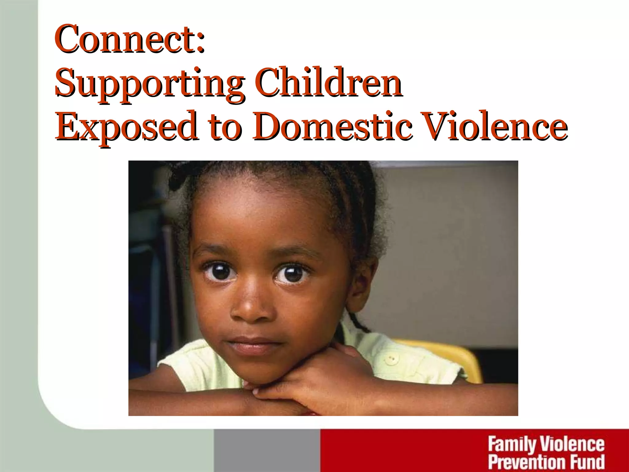 - The effects of domestic violence on children and how it can impact their development, behavior, and emotions.