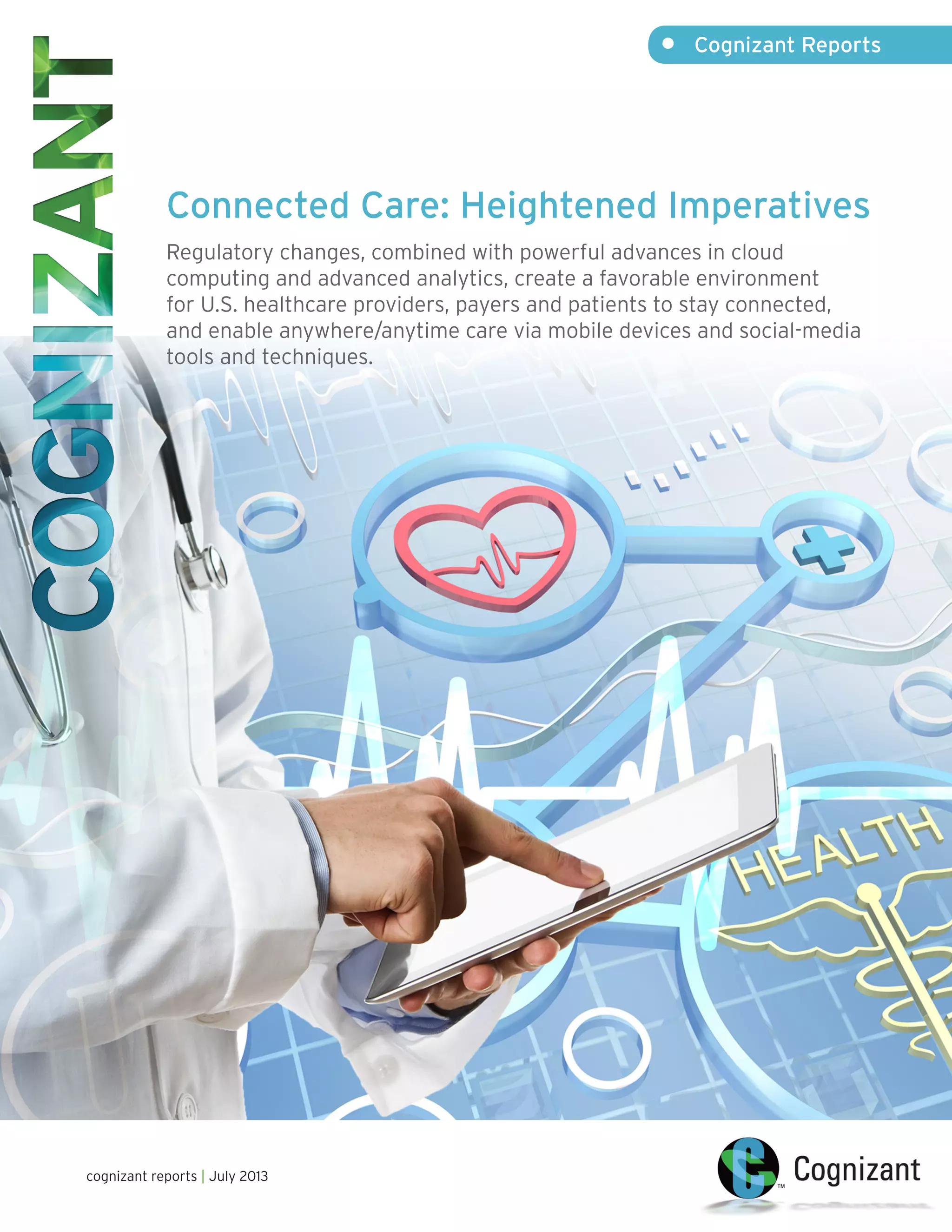 The document discusses the rise of connected care in the U.S. healthcare system. Regulatory changes and new technologies are driving a shift towards a more connected and collaborative system focused on quality of care. Connected care aims to provide the right care at the right time and place through greater data sharing and care coordination between providers. Key technologies like electronic health records, mobile devices, analytics and cloud computing will enable connected care by facilitating access to patient information across settings. However, connected care also faces challenges in standardization, physician buy-in, and integrating fragmented systems.